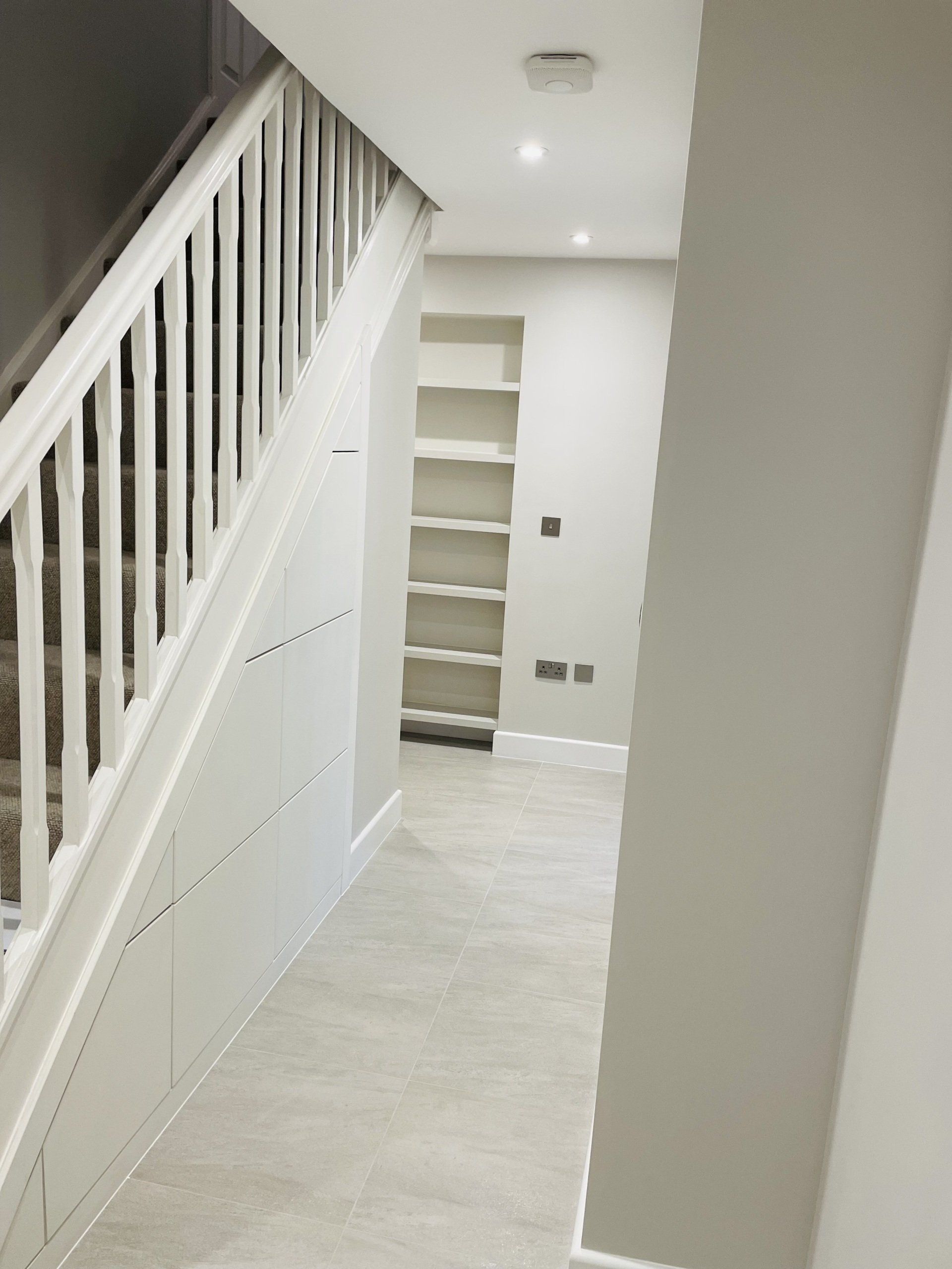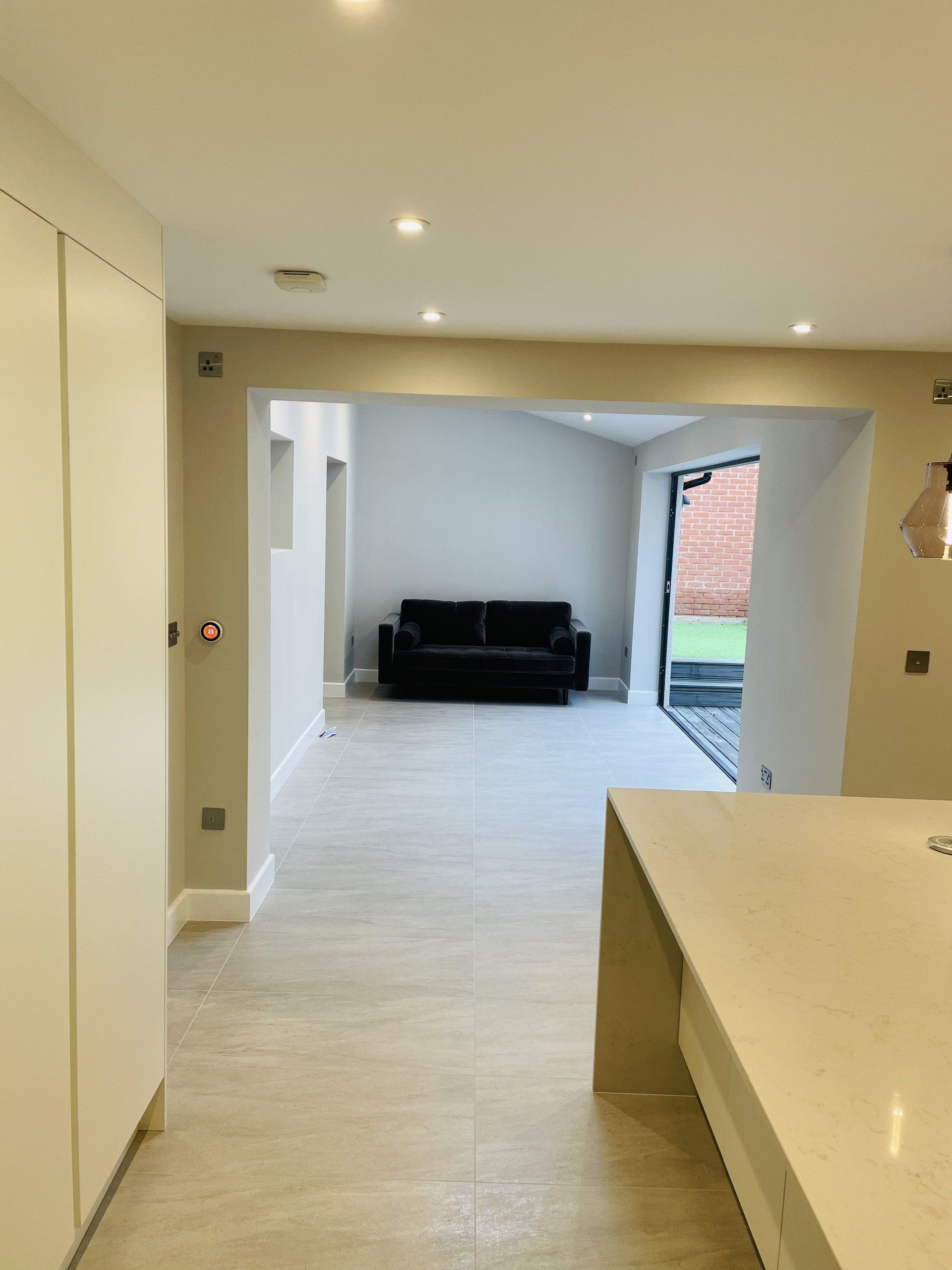 Porcelain tiles , Bespoke kitchen supplied and fitted , All new doors and handles , Painted from top to bottom.